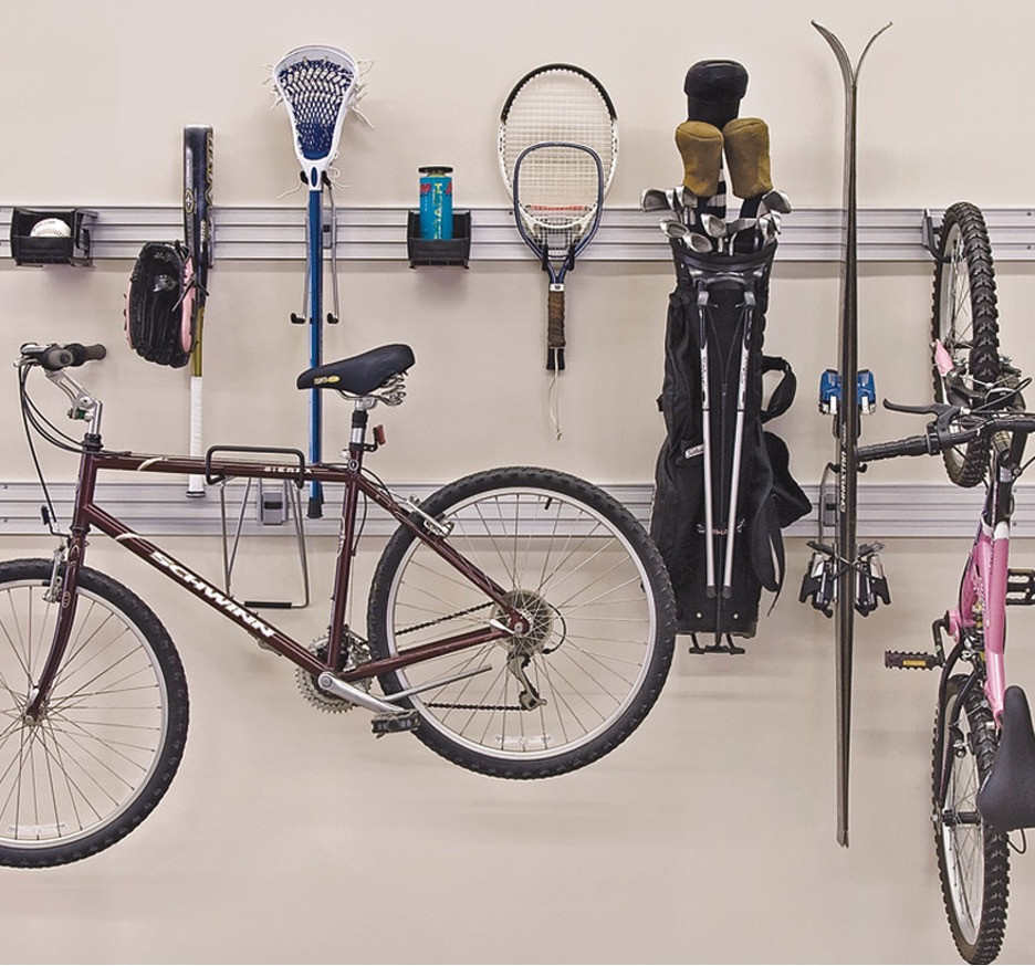 Similar to slat wall, Omni Track uses wall-mounted rails and accessory hooks but it is made of metal strips that go across the wall, instead of covering the entire wall. This is great for small garages or underutilized areas to lift items off the floor. It comes in extended lengths of cut-to-fit tracks with custom hooks and shelving options to neatly hang all of the items you need. Omni Track offers an easy solution to keep items within reach, yet tucked away and it is versatile enough to handle a wide range of items that may be lurking in the corners of your garage.