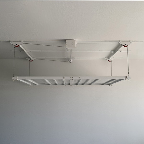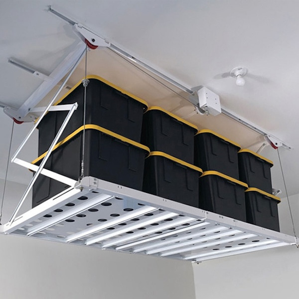 Overhead racks are perfect for storing bins and boxes containing seasonal items that are only needed a few times per year. It's the perfect space-saving design that makes the most of the vertical space available within a garage and helps free up floor space while also maximizing storage capacity. When installing overhead racks, consider the weight limit of the shelving and components to ensure they can safely hold the items you plan to store.