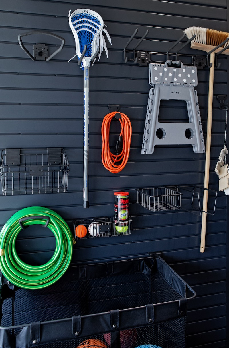 "The best part about slat wall is how it lifts everything off the floor and makes better use of the vertical space available on garage walls," says Dave Westin, Concept II's Operations Manager. Slat wall is made of PVC and MDF and has horizontal grooves that are configured to work with a variety of accessories. Installing slat wall on one or all garage walls is a relatively inexpensive but highly effective solution for organizing sports gear, gardening tools and other seasonal items. It comes in a wide variety of colors and is fully customizable with accessories such as baskets, bins, hooks, and shelving that are adjustable based on what you need to store. It is such a simple solution that makes items easier to find – and more likely to be put away!