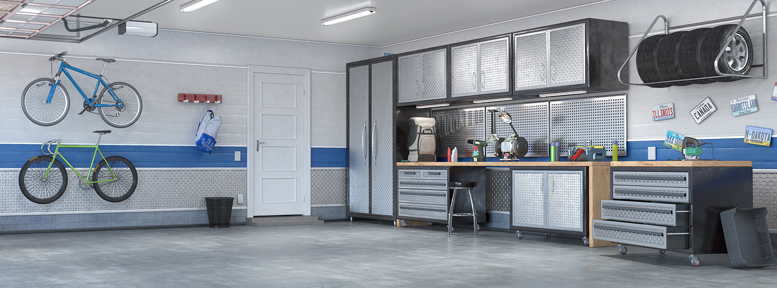 Below are some of our favorite storage components for garages that will give you a jump start on your outdoor organization!